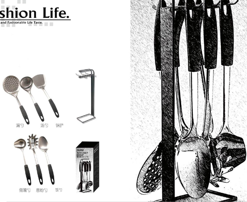 产品特点:不锈钢七件套,专为礼品开发的厨具,超大广告位。