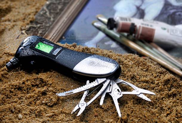 品牌,领先的创意,助成功者更成功,毕加索蓝魔系列,汽车工具可谓商务、车族首选,也是目前唯一世界品牌的胎压多功能工具。灵感来自汽车救生,气压测量三种单位模式,拥有玻璃安全锤,应急手电筒、老虎钳、十字螺丝刀、剪刀、锯刀、一字螺丝刀、安全带专用锯刀,是汽车预防与救生的好帮手。