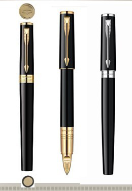 PVD镀金表面印有派克logo以及标志性的格子纹