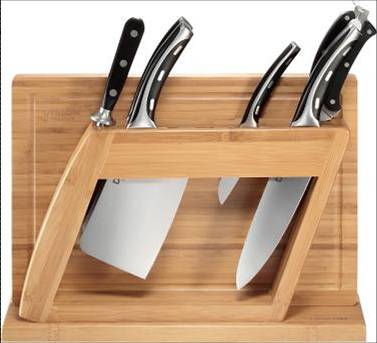 配置:砍骨刀、切菜刀、万用刀、水果刀、万能剪、磨刀棒、开槽碳化竹抑菌刀座、高强度切菜板