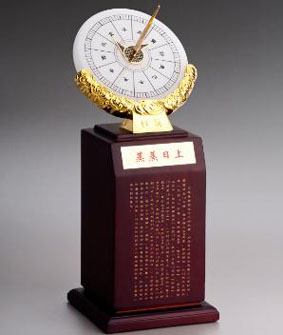 产品名称:蒸蒸日上 产品规格:11*11*28cm 产品材质:阿富汗白玉/锌合金镀金/美国枫 木底座 产品寓意:天行健,君子自强不息,地势坤, 君子厚。晷面朝阳,象征惜时如金;晷针向 上,寓表永向光明;晷针针影围绕太阳运转 不息欲指百折不挠。日晷与时偕行似当代拼 搏向上、开拓创新。拥有此品,寓意事业如 日中天。