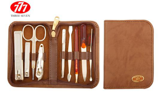 【生产厂家】:韩国777株式会社 【产品名称】:韩国777指甲美容套装 【产品型号】:DS-800RG 【材 质】:韩国优质碳钢 【产品规格】:120×81×24mm 【产品重量】:204G 【产品内容】:9件套:耳勺、大号指甲刀、眉夹、指甲锉、小号斜口之家刀、小号指甲刀、鼻毛剪、死皮铲、两面用死皮推 【保管方式】:每次用后用棉布擦净,置于干燥处 【注意事项】:刀具类利器,请妥善保管,远离儿童 接触地方