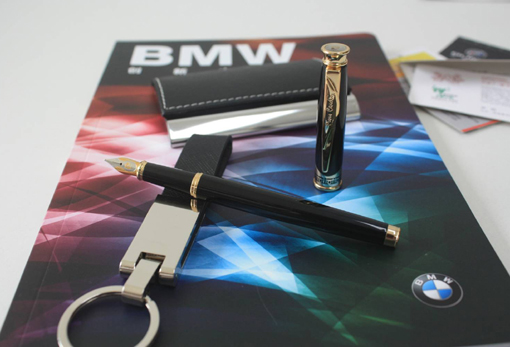 世纪星钢笔+花纹皮革金属名片盒+钥匙扣